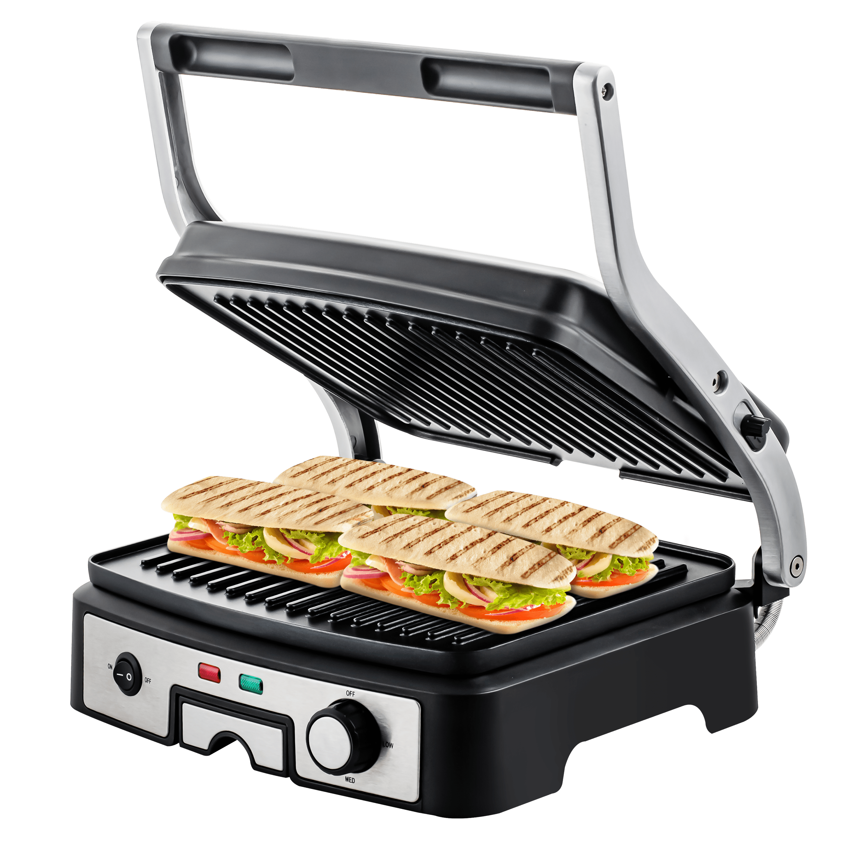 – Easy to clean non-stick grill pates and removable oil / fat drip tray